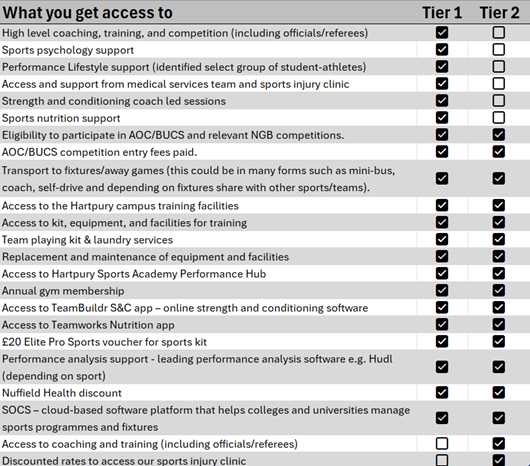 Each tier gives you access to a tailored package of support, from coaching and performance analysis to facilities and specialist services. More details on what's included in each tier is available here.
